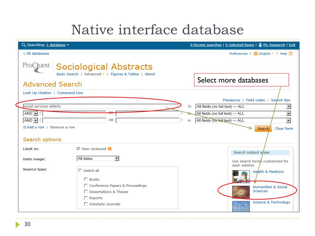 Databases for sociology • Ebsco-databases: Academic Search Elite and Business Source Premier • Bibliografic: Francis / Intern. Bibliography of the Social Sciences / PsycInfo /Sociological Abstracts / Social Services Abstracts • Citation Index: Web of Science: SSCI • Statistics: OECD iLibrary e.a. • Specific: Social Care Online