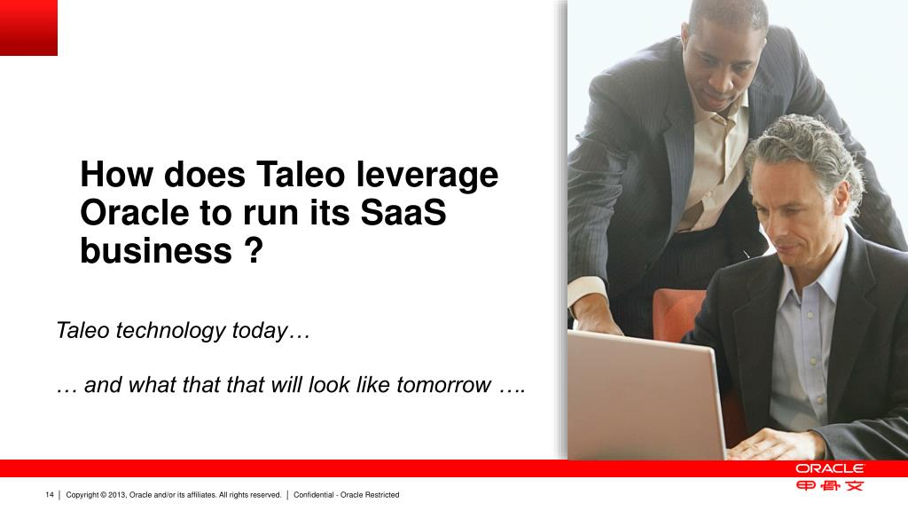 How does Taleo leverage Oracle to run its SaaS business ? Taleo technology today… … and what that that will look like tomorrow ….