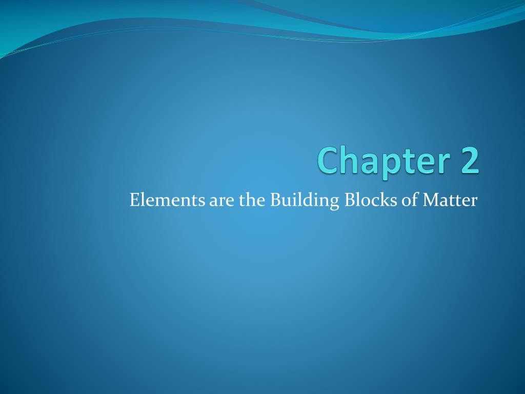 Chapter 2. Elements are the Building Blocks of Matter. Pure Substance . A material that is made up of particles that are identical to each other. (all the same) Have their own set of properties - boiling point, density … Two types of Pure Substances