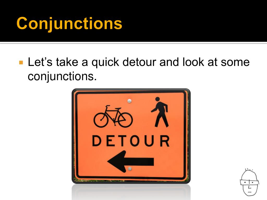 Conjunctions • Let’s take a quick detour and look at some conjunctions.