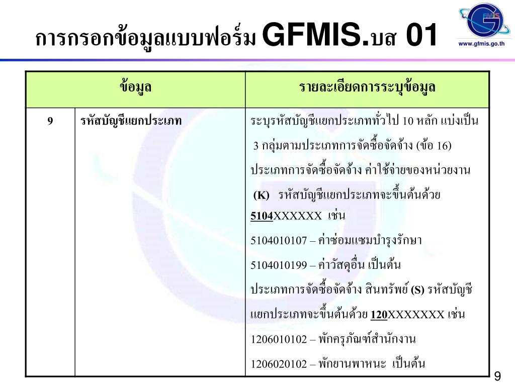 การกรอกข้อมูลแบบฟอร์ม GFMIS.บส 01