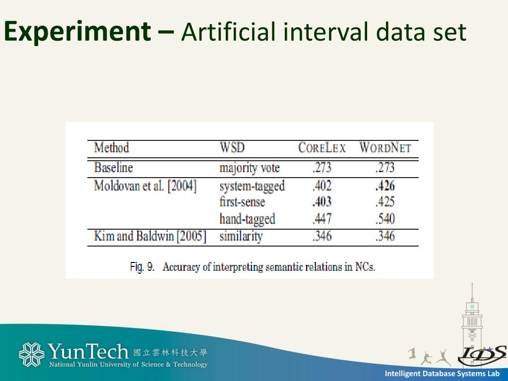 Conclusions • we proposed methods can achieving an accuracy, and demonstrated that word sense information for component nouns is vital in NC interpretation.