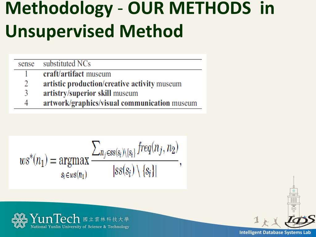 Methodology -OUR METHODS inSupervised Method either modifier or head noun