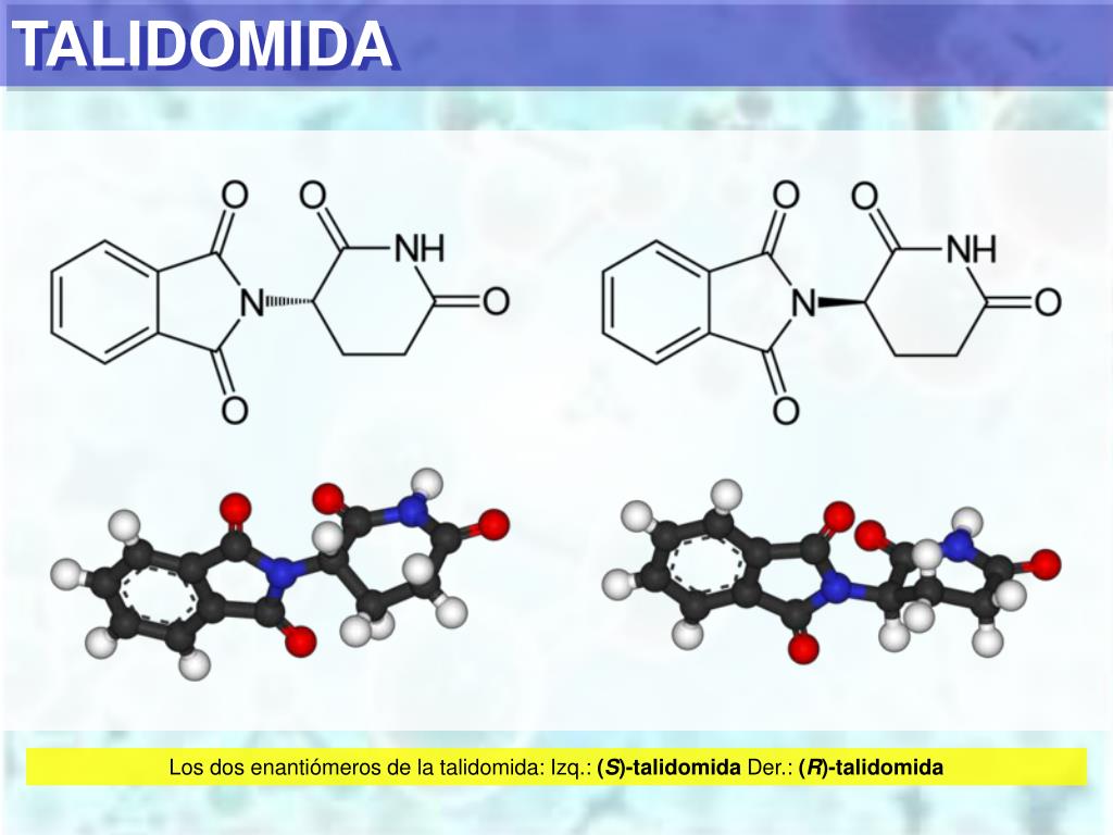 TALIDOMIDA Los dos enantiómeros de la talidomida: Izq.: (S)-talidomidaDer.: (R)-talidomida