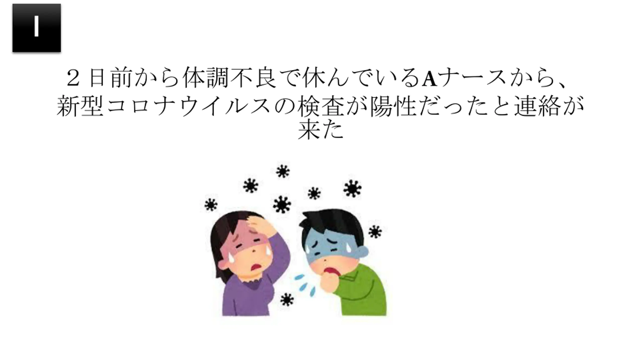 Ⅰ 2日前から体調不良で休んでいる ナースから、 新型コロナウイルスの検査が陽性だったと連絡が 来た