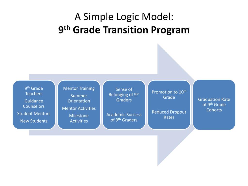 Benefits of Logic ModelingMcLaughlin, J. A., & Jordan, G. B. (1999). Logic models: a tool for telling your program’s performance story. Evaluation and Program Planning 22, 65-72. • Builds a shared understanding of the program and expectations for inputs, processes, and outcomes • Helpful for program design (e.g., identifying critical elements for goal attainment and plausible linkages among elements) • Points to a balanced set of key performance indicators