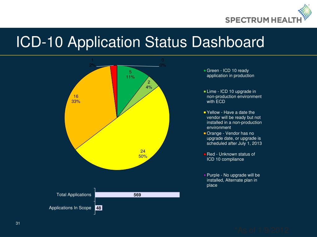 ICD-10 Application Status Dashboard *As of 1/9/2012