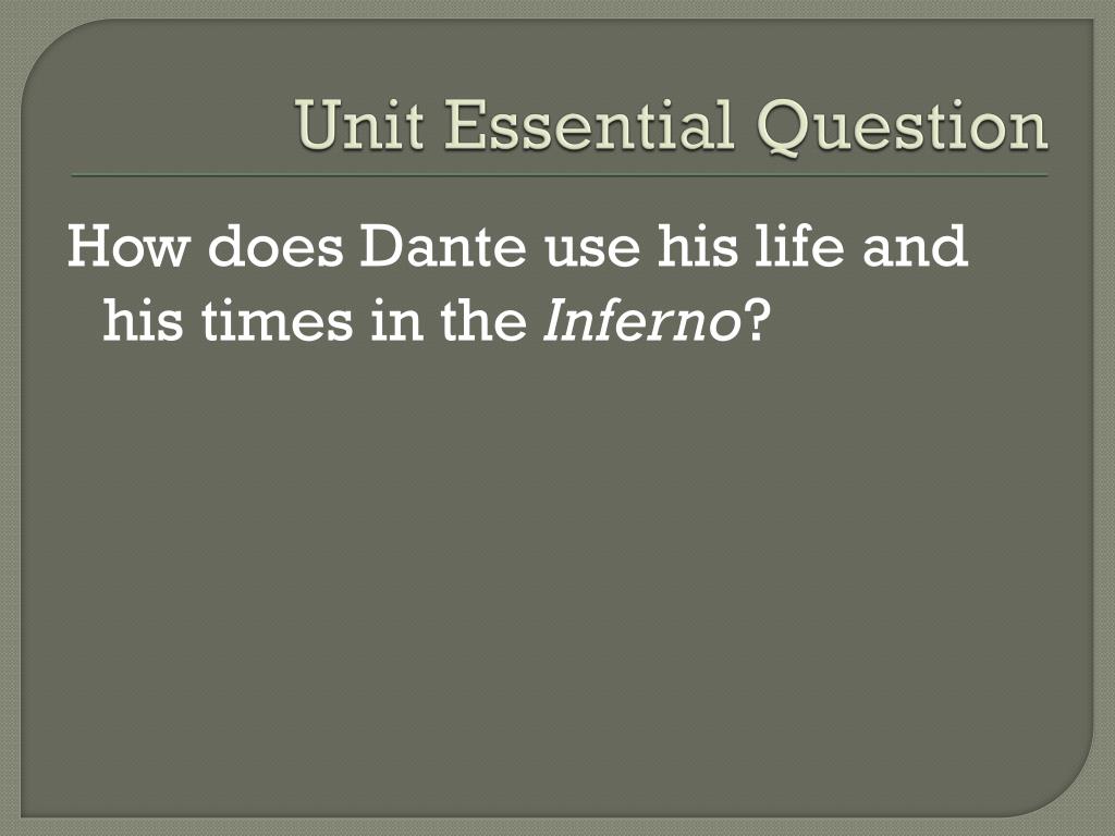 Unit Essential Question How does Dante use his life and his times in the Inferno?