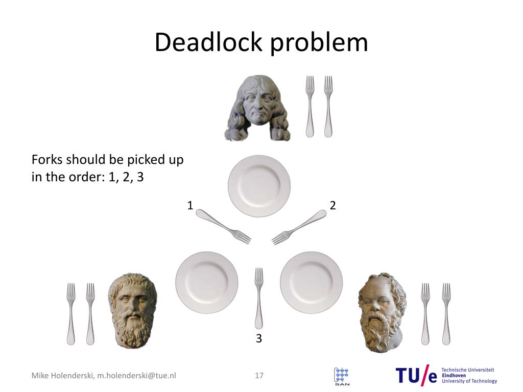 Deadlock problem Forks should be picked up in the order: 1, 2, 3 1 2 3