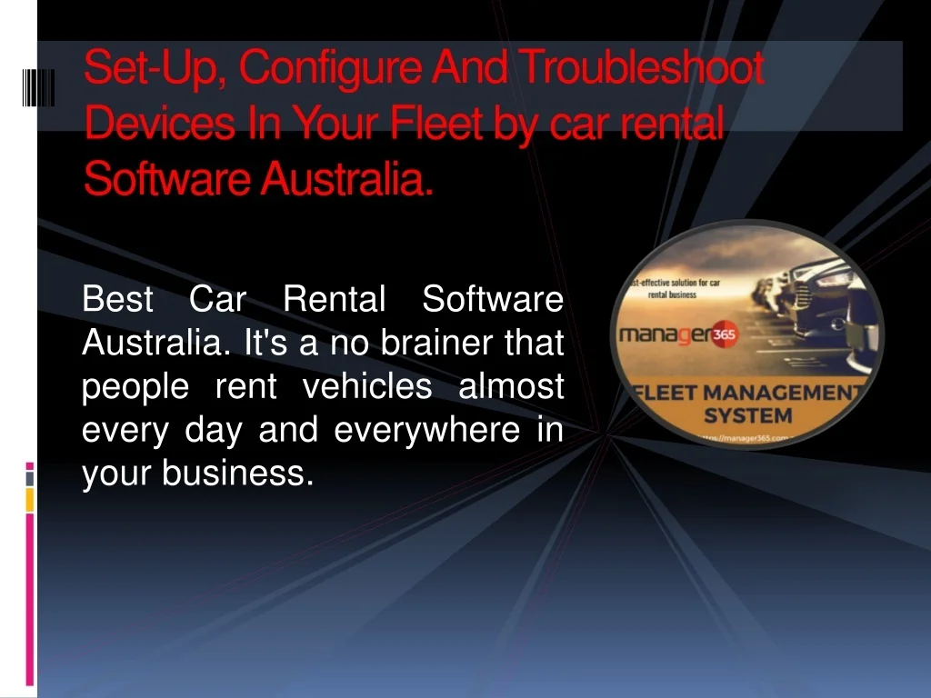 Set-Up, Configure And Troubleshoot Devices In Your Fleet by car rental Software Australia. Best Australia. It's a no brainer that people rent vehicles almost every day and everywhere in your business. Car Rental Software