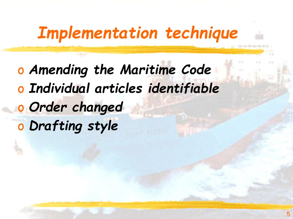 Implementation technique • Amending the Maritime Code • Individual articles identifiable • Order changed • Drafting style