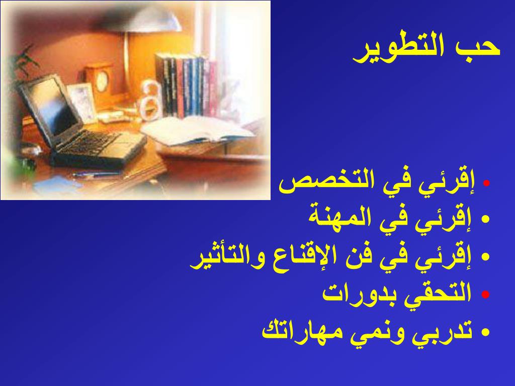 حب التطوير • إقرئي في التخصص • إقرئي في المهنة • إقرئي في فنالإقناع والتأثير • التحقي بدورات • تدربي ونمي مهاراتك