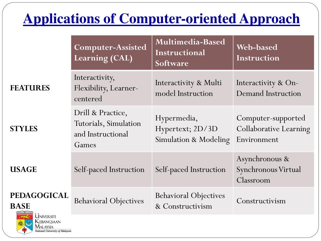 Integrating ICT in Teaching and Learning • CAI‐Multimedia‐E‐leaning‐ • U‐learning‐M‐learning Interactive‐ Flexible‐ Multi Sensory‐ Engaging‐ Collaborative Source :UNEVOC (2011)