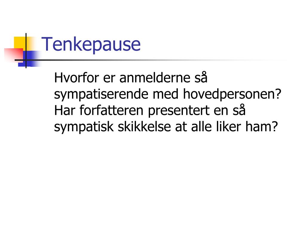 Tenkepause Hvorfor er anmelderne så sympatiserende med hovedpersonen? Har forfatteren presentert en så sympatisk skikkelse at alle liker ham?