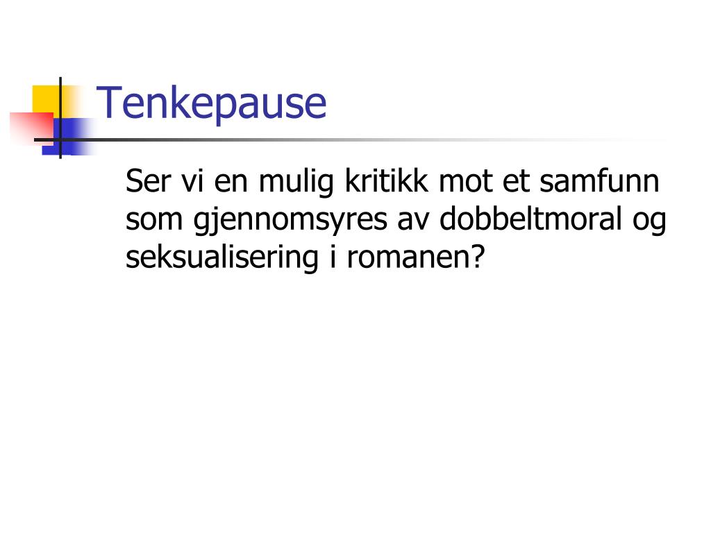 Tenkepause Ser vi en mulig kritikk mot et samfunn som gjennomsyres av dobbeltmoral og seksualisering i romanen?
