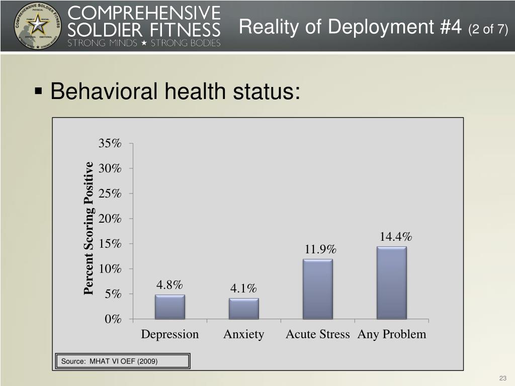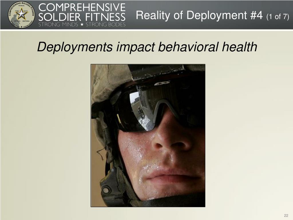 Reality of Deployment #4 (1 of 7) Deployments impact behavioral health