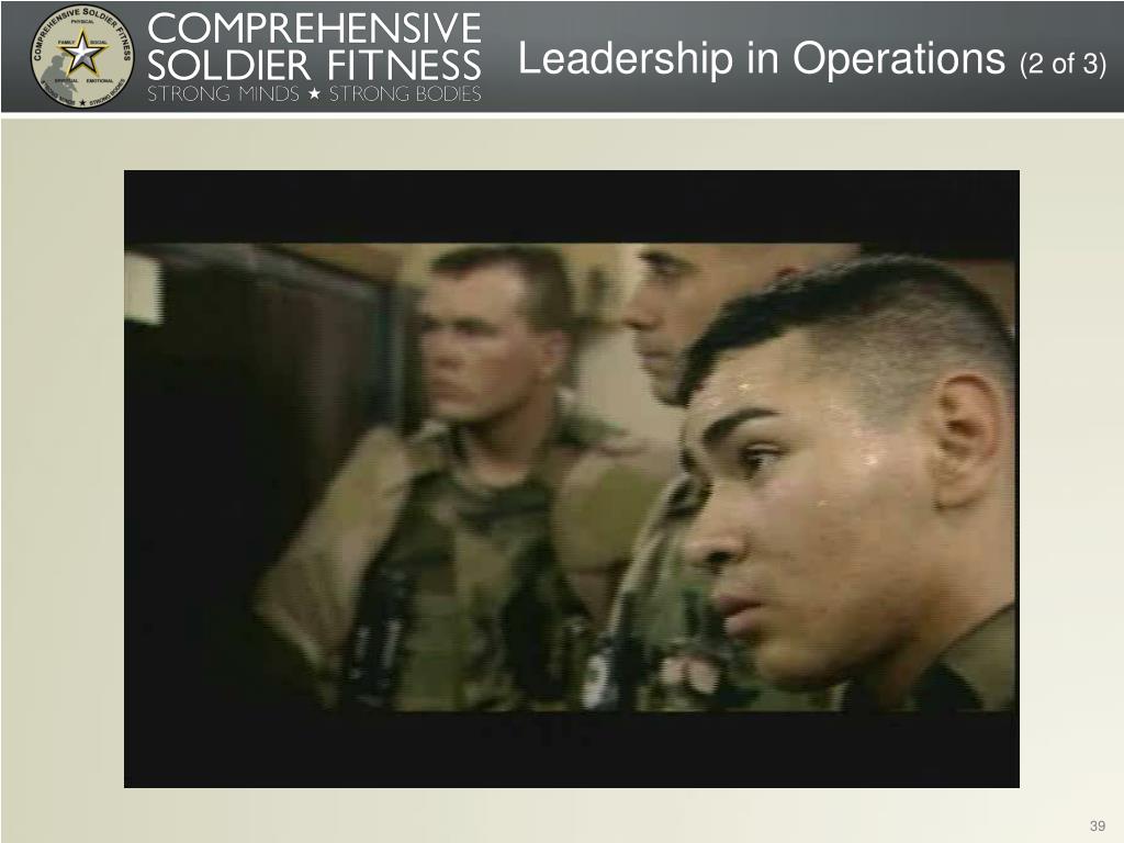 Leadership in Operations (1 of 3) • When traumatic events happen: • There are procedures in place for managing traumatic events • Leaders play a critical role in supporting their organizations in times of crisis