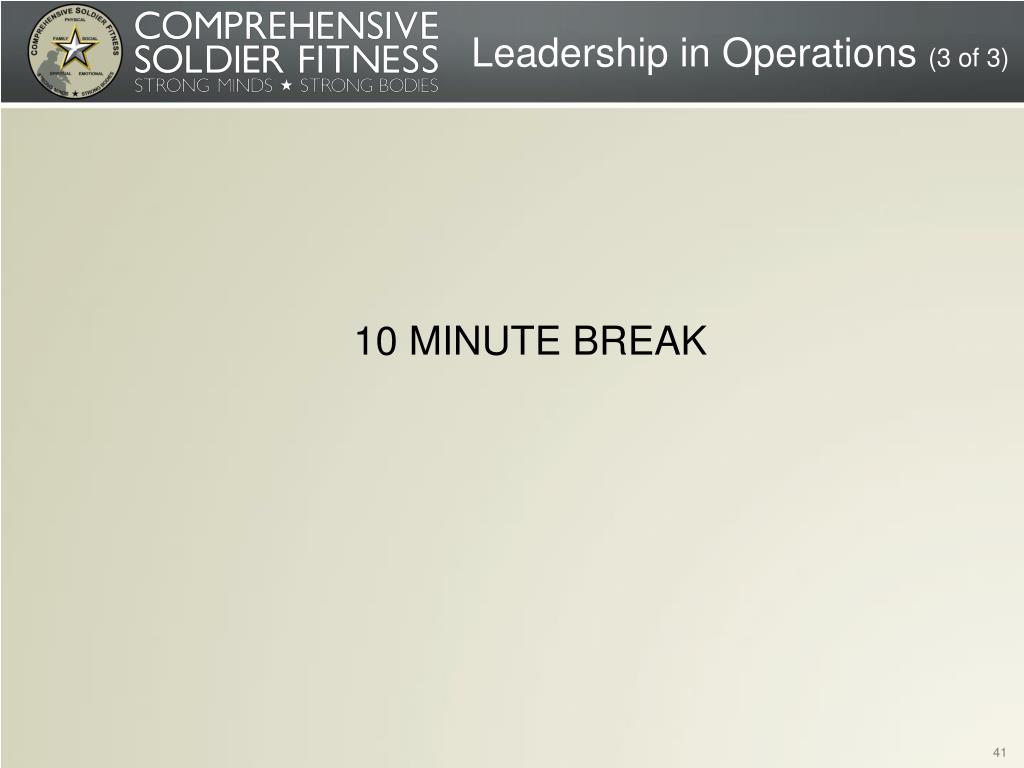 Leadership in Operations (3 of 3) 10 MINUTE BREAK