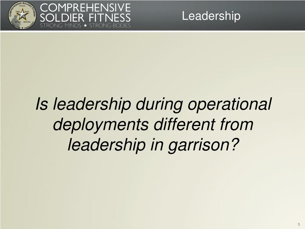 Leadership Is leadership during operational deployments different from leadership in garrison?