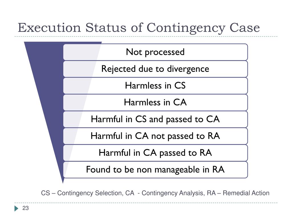 Execution Status of Contingency Case CS – Contingency Selection, CA - Contingency Analysis, RA – Remedial Action
