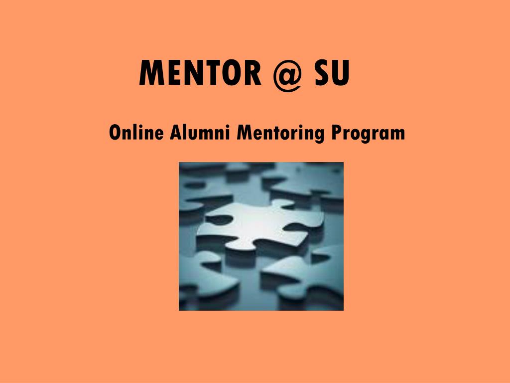 MENTOR @ SU. Online Alumni Mentoring Program. What’s in it for me?. Career Advice and Guidance Informational Interviewing Resume reviews Organization ‘insider’ information Internships Job shadowing Regional Information NETWORKING. Top 6 reasons you might need a mentor.