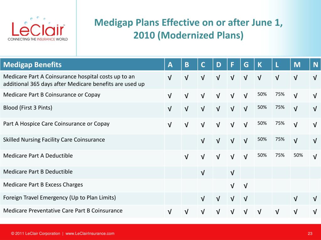 Medigap Plans Effective on or after June 1, 2010 (Modernized Plans)