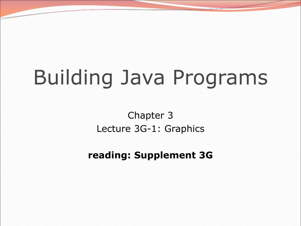 Building Java Programs Chapter 3 Lecture 3G-1: Graphics reading: Supplement 3G