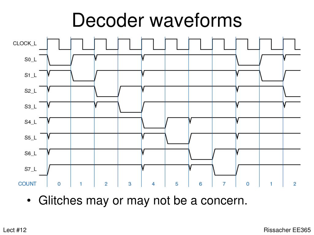 Decoder waveforms • Glitches may or may not be a concern. Lect #12 Rissacher EE365