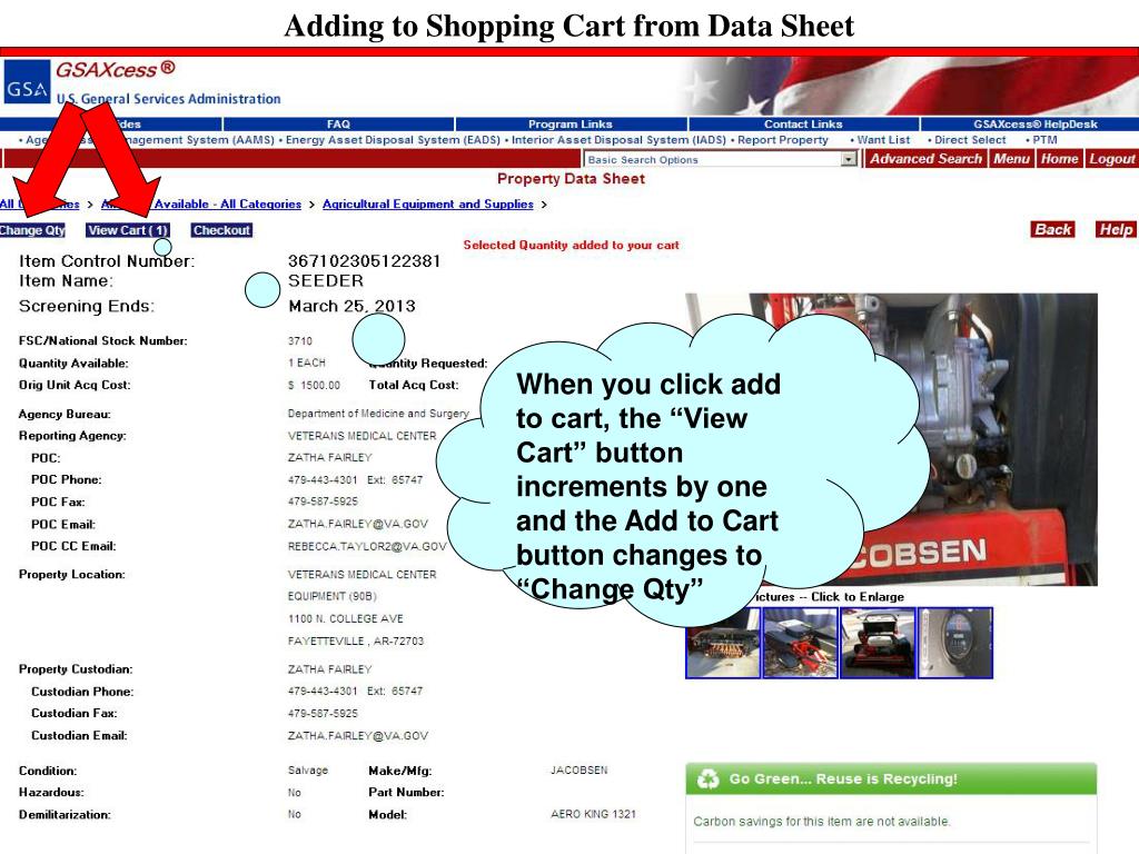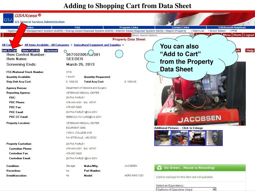 Add to Shopping Cart from Search Results Once you find the property item you are interested in, simply click the add to cart button