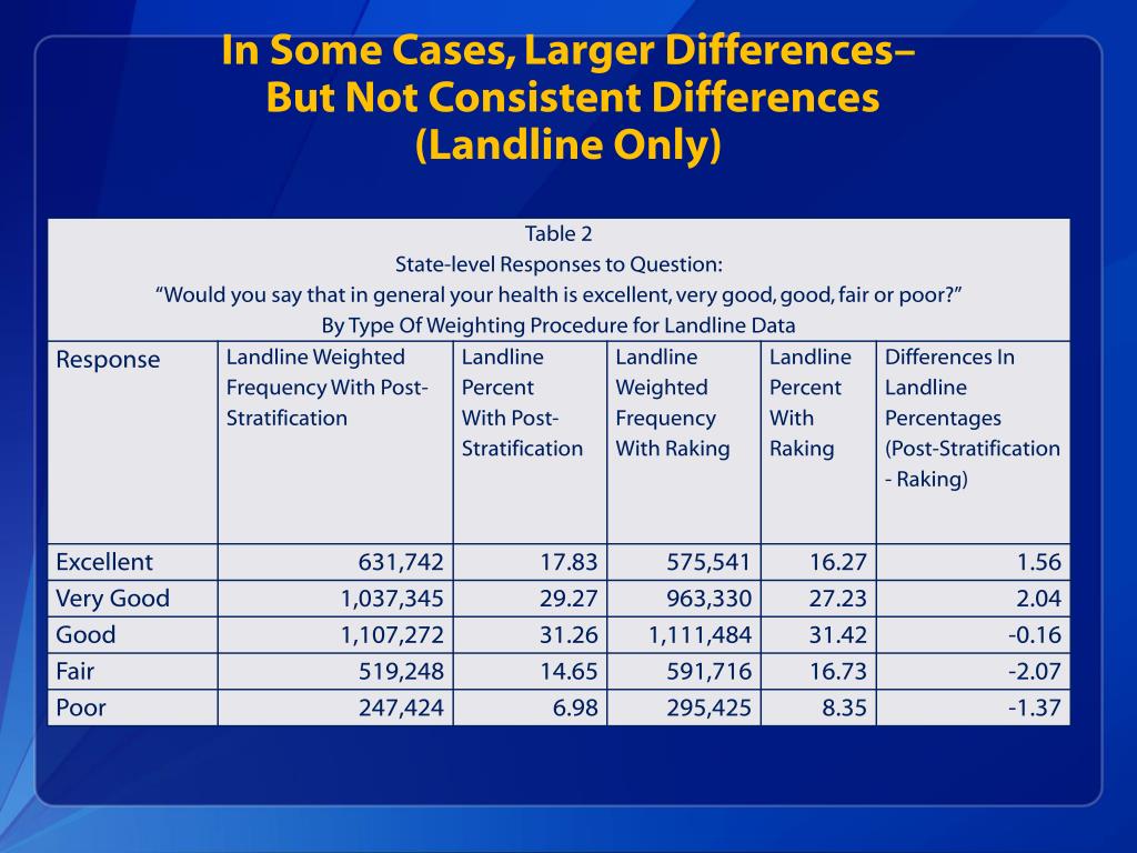 In Some Cases, Larger Differences– But Not Consistent Differences(Landline Only)