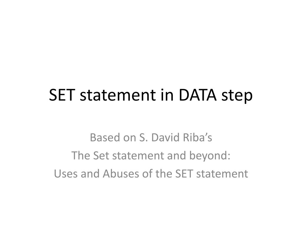 SET statement in DATA step Based on S. David Riba’s The Set statement and beyond: Uses and Abuses of the SET statement