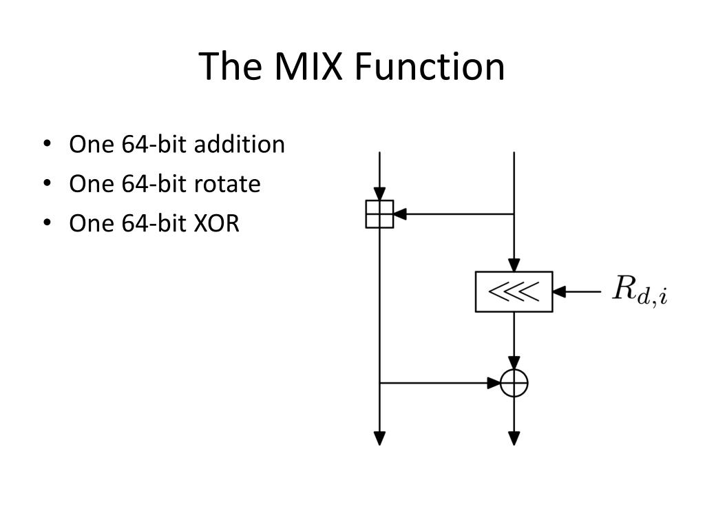 The MIX Function • One 64-bit addition • One 64-bit rotate • One 64-bit XOR