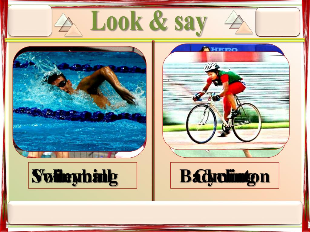New words with sentences by using picture Cycling Ride on the cycle for competition. Cycling is a very hard competition.