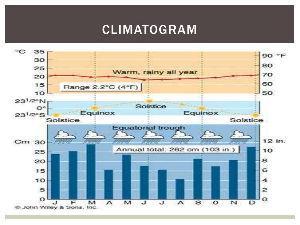 Tropical Rainforest Climate • The climate of a Tropical Rainforest is hot and moist as they are only located near the Equator • Tropical Rainforests are receive great amounts of precipitation a year averaging out to be around 60 to 160 inches • Tropical Rainforests usually averages around 64F for common temperature