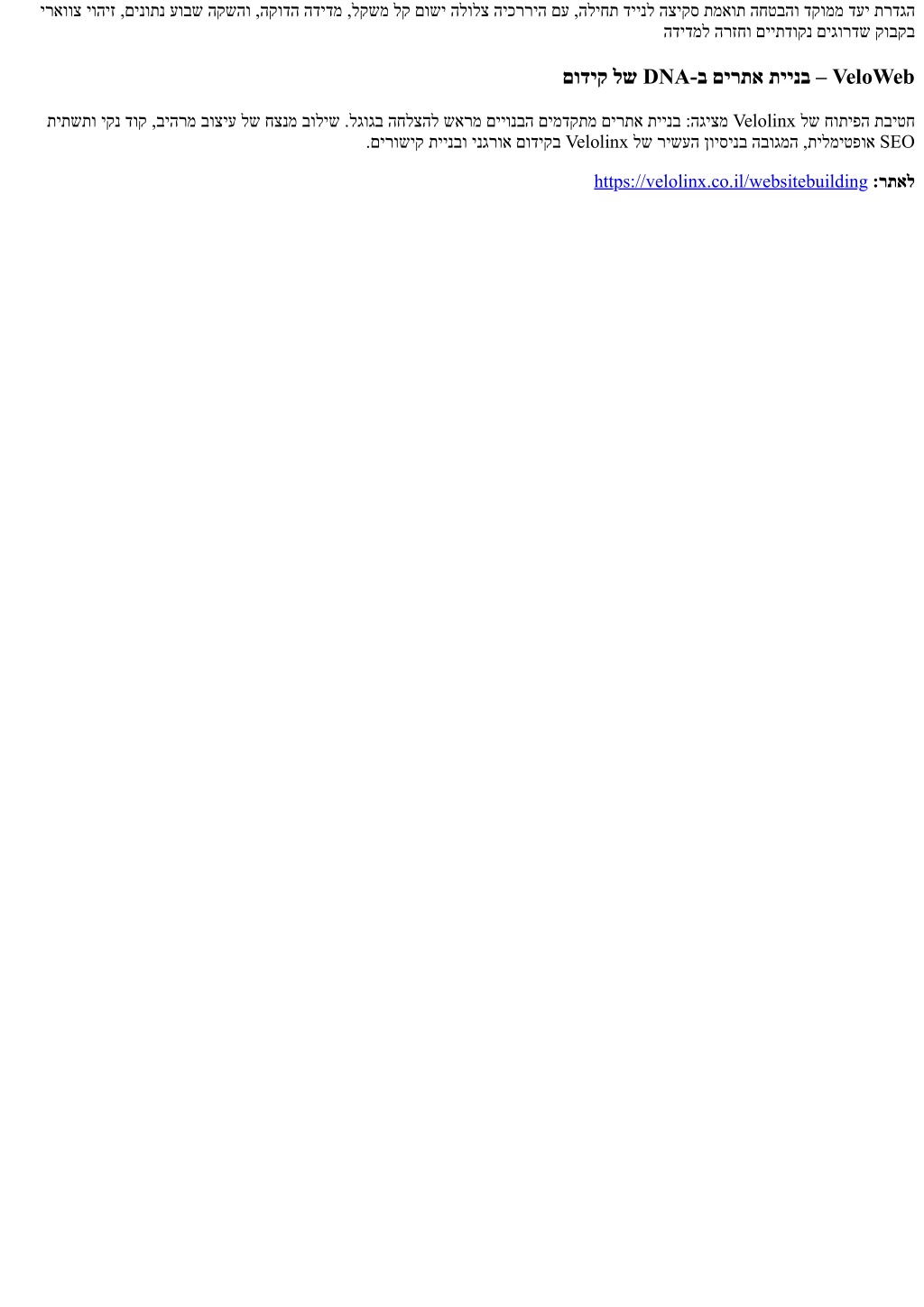 יראווצ יוהיז ,םינותנ עובש הקשהו ,הקודה הדידמ ,לקשמ לק םושי הלולצ היכרריה םע ,הליחת דיינל הציקס תמאות החטבהו דקוממ דעי תרדגה הדידמל הרזחו םייתדוקנ םיגורדש קובקב םודיק לש DNA-ב םירתא תיינב – VeloWeb תיתשתו יקנ דוק ,ביהרמ בוציע לש חצנמ בוליש .לגוגב החלצהל שארמ םייונבה םימדקתמ םירתא תיינב :הגיצמ Velolinx לש חותיפה תביטח .םירושיק תיינבו ינגרוא םודיקב Velolinx לש רישעה ןויסינב הבוגמה ,תילמיטפוא SEO https://velolinx.co.il/websitebuilding :רתאל