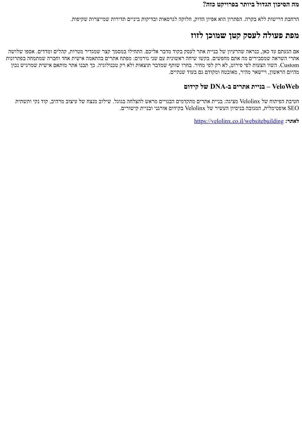 ?הזכ טקיורפב רתויב לודגה ןוכיסה המ .תופיקש תורציימש תורידת םייניב תוקידבו תואסרגל הקולח ,קודה ןויפא אוה ןורתפה .הרקב אלל תושירד תבחרה זוזל ןכומש ןטק קסעל הלועפ תפמ השולש ופסא .םידדמו םילהק ,תורטמ רידגמש רצק ךמסמב וליחתה .םכילא רבדמ דוקב קסעל רתא תיינב לש ןויערהש הארנכ ,ןאכ דע םתעגה םא תונורתפב החמתמש הרבחו דחא תישיא המאתהב םירתא חתפמ :םימרוג ינש םע תינושאר החיש ושקב .םישפחמ םתא המ םיריבסמש הארשה ירתא ןוכנ שיגרמש תישיא םאתומ רתא ונבת ךכ .היגולונכט קר אלו תואצות רבדמש ףתוש ורחב .ריחמ יפל קר אל ,טוריפ יפל תועצה וושה .Custom .םייתנש דועב םג םדוקמו חטבואמ ,ריהמ ראשייו ,ןושארה םויהמ םודיק לש DNA-ב םירתא תיינב – VeloWeb תיתשתו יקנ דוק ,ביהרמ בוציע לש חצנמ בוליש .לגוגב החלצהל שארמ םייונבה םימדקתמ םירתא תיינב :הגיצמ Velolinx לש חותיפה תביטח .םירושיק תיינבו ינגרוא םודיקב Velolinx לש רישעה ןויסינב הבוגמה ,תילמיטפוא SEO https://velolinx.co.il/websitebuilding :רתאל