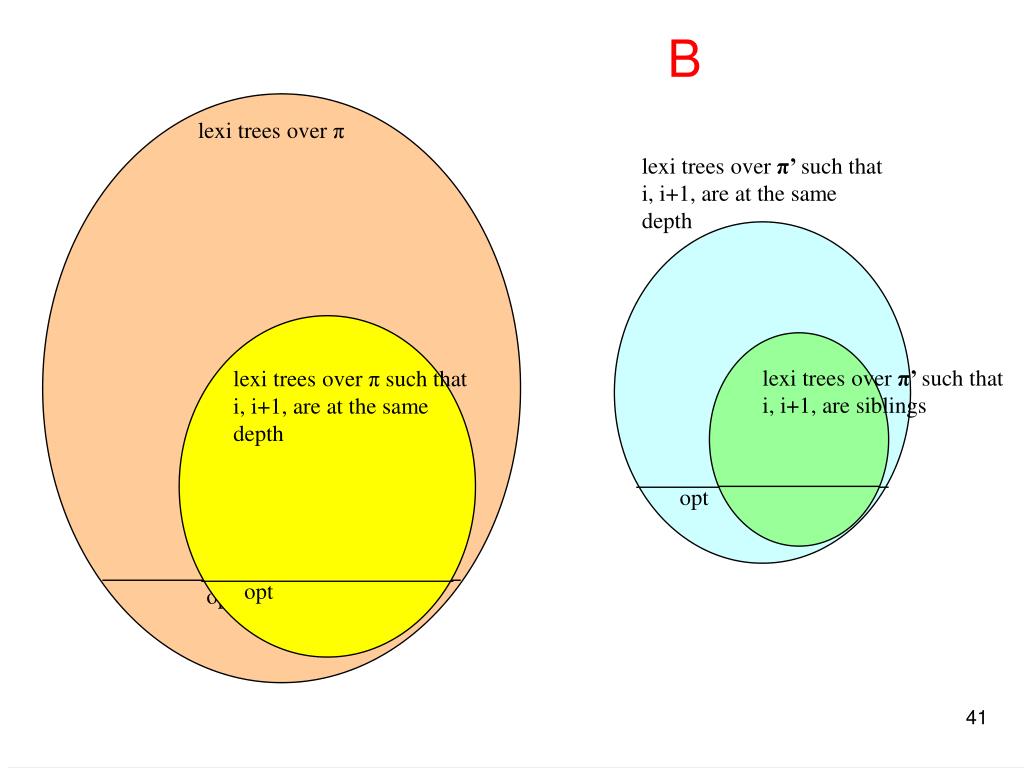 lexi trees over π’ such that i, i+1, are siblings lexi trees over π such that i, i+1, are at the same depth opt B lexi trees over π lexi trees over π’ such that i, i+1, are at the same depth opt opt