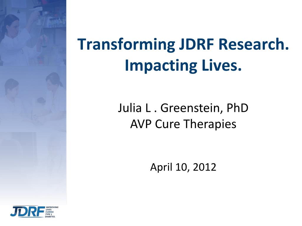 Transforming JDRF Research.Impacting Lives. Julia L . Greenstein, PhD AVP Cure Therapies April 10,2012