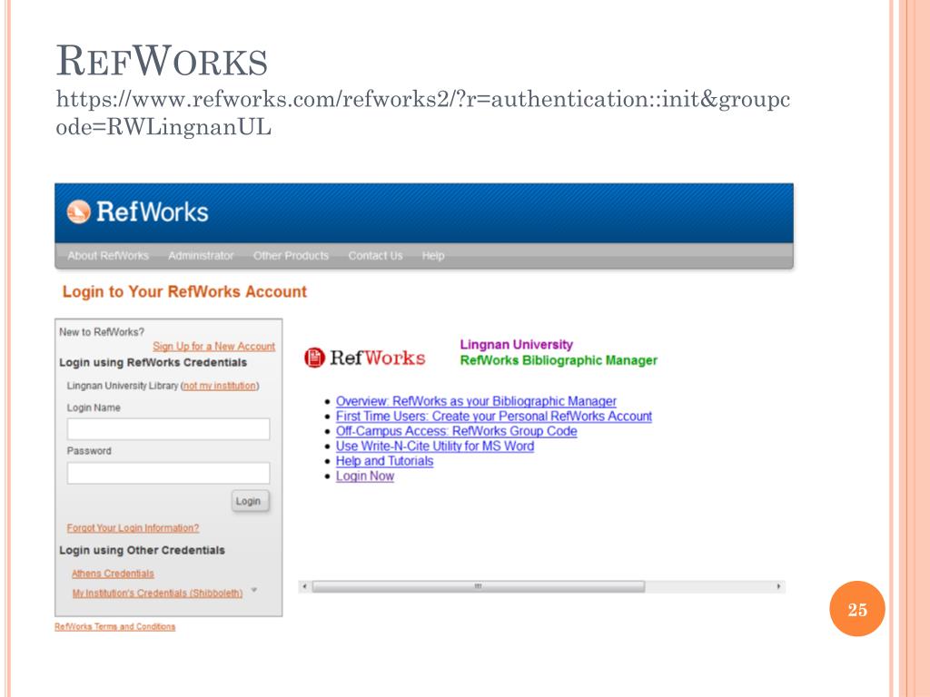 Citation Management / Bibliography Generation Tools • RefWorks • http://www.library.ln.edu.hk/find/guide-refworks • RefWorks is a web-based tool that allows Lingnan staff and students to: • Download citations directly from the Library catalogue and most databases subscribed by the Library • Organize the citations into different folders • Generate in-text citation, bibliography or reference list in the citation style of your choice, including APA, MLA, Harvard, Chicago style and more • Citation Builder • http://www.lib.ncsu.edu/lobo2/citationbuilder/citationbuilder.php • Citation and Style • http://libguides.ln.edu.hk/content.php?pid=333865&sid=2730634#10160834