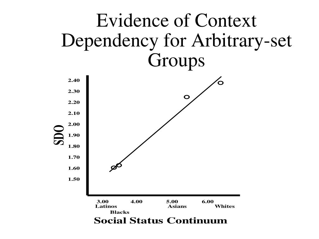 Selected Items from the Social Dominance Scale • “To get ahead in life, it is sometimes necessary to step on other groups.” • “Inferior groups should stay in their place.” • “Superior groups should dominate inferior groups.” • “All groups should be given an equal chance in life.”