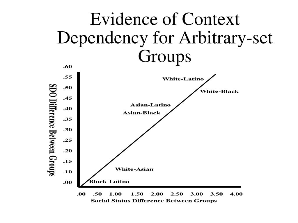 SDO as a Function of Race & Perceived Relative Status In USA (Levin, 2003) SDO Level p < .01 n.s. Interaction: p <. 03