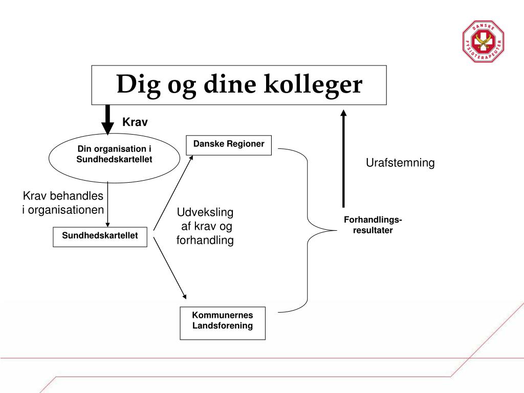 Dig og dine kolleger Krav Din organisation i Sundhedskartellet Danske Regioner Urafstemning Krav behandles i organisationen Udveksling af krav og forhandling Forhandlings-resultater Sundhedskartellet Kommunernes Landsforening