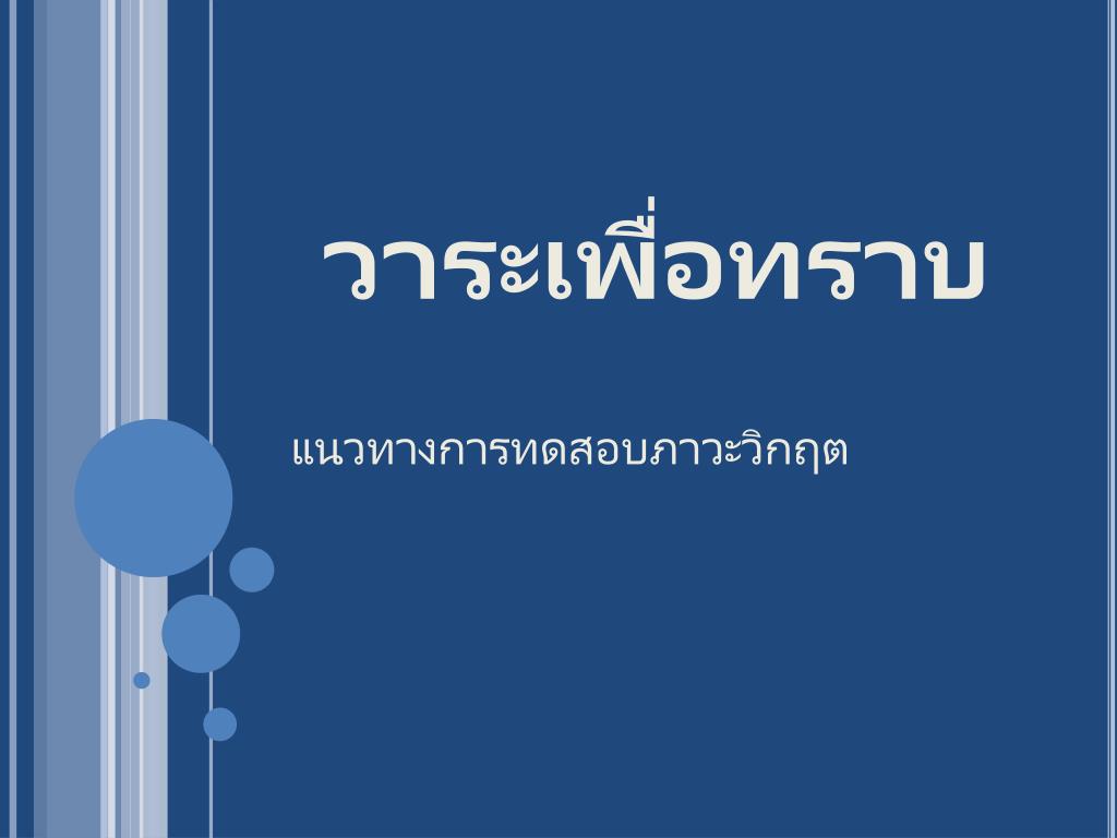 Agenda • เพื่อทราบ • นำเสนอสรุปผลการสำรวจความเห็นจากการประชุมครั้งก่อน • เพื่อพิจารณา • แนวทางการทดสอบภาวะวิกฤต