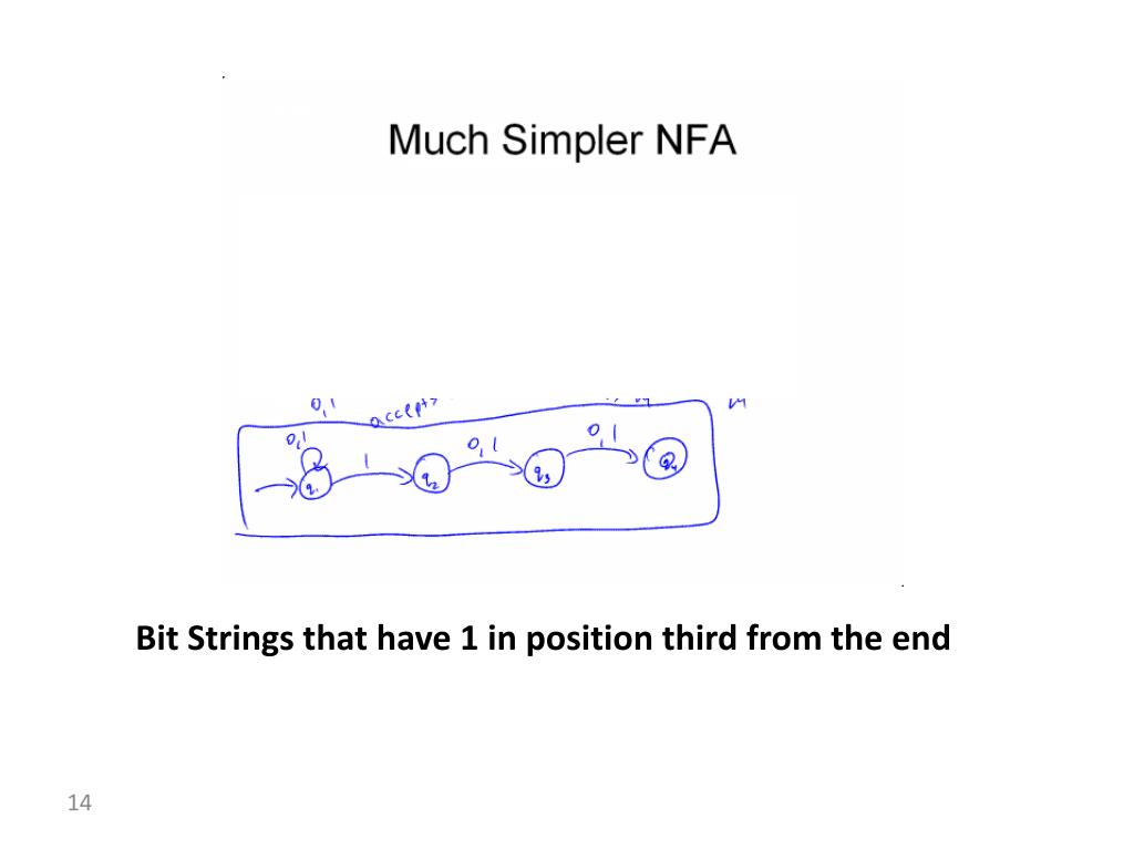 Proof (cont.) The initial state of M is: . Finally, the final state of M is: Since M accepts if N reaches at least one accepting state. The reader can verify for her/his self that N indeed simulates N .