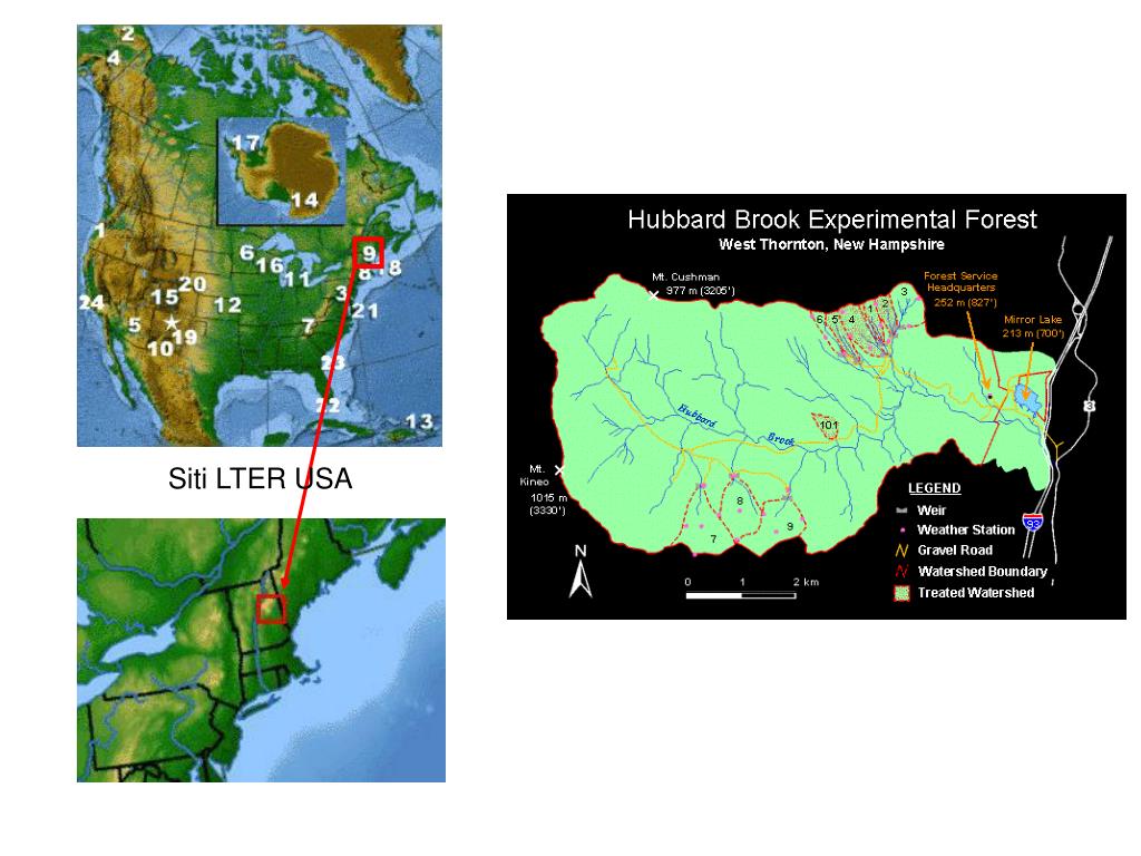 Vegetazione e fertilità del suolo • La vegetazione gioca un ruolo critico nello sviluppo e nel mantenimento delle proprietà del suolo e della sua fertilità • Esperimenti di taglio completo della vegetazione sono stato condotto per molti anni in piccoli bacino imbriferi nella località diHubbard Brook, (NH, USA), producendo: • un forte aumento delle portate dei corsi d’acqua • una riduzione da 3 a 20 volte della concentrazione di nutrienti (come ioni di varia natura) • una netta transizione dalla ritenzione alla deplezione dell’azoto: da un accumulo di 1-3 kg N ha-1 anno-1 in presenza di vegetazione alla perdita di 54 kg N ha-1 anno-1 dopo il taglio
