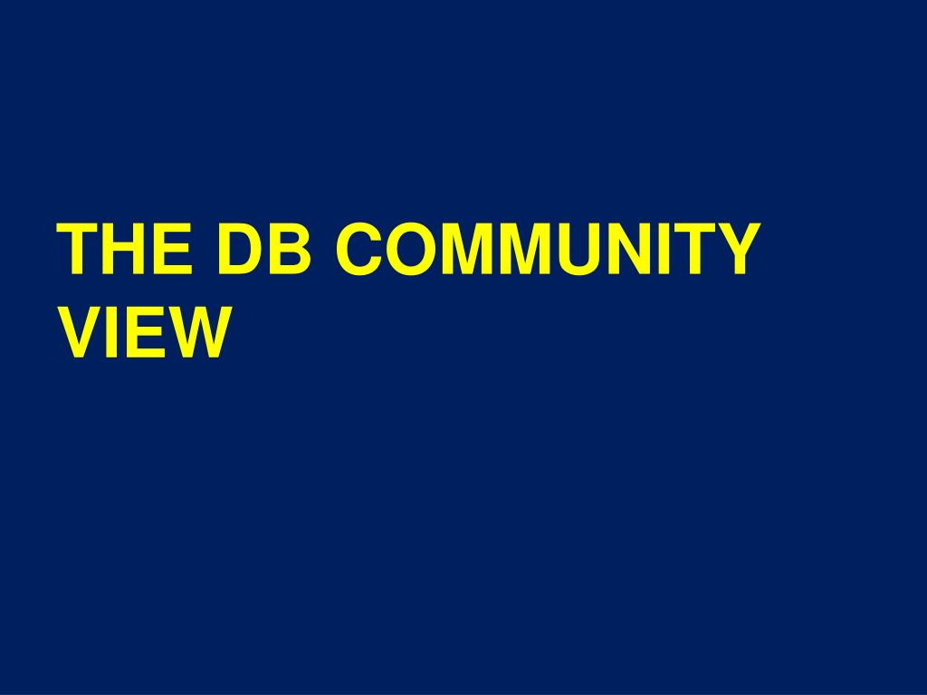 Complexity • The temptation is to then assume one must think of DB people on a ‘case-by-case’ basis and yet this itself is a service agency view (and an over-simplification). • Communities are always complex and always composed of individuals and yet, they form a community, i.e. there are over-riding commonalities.