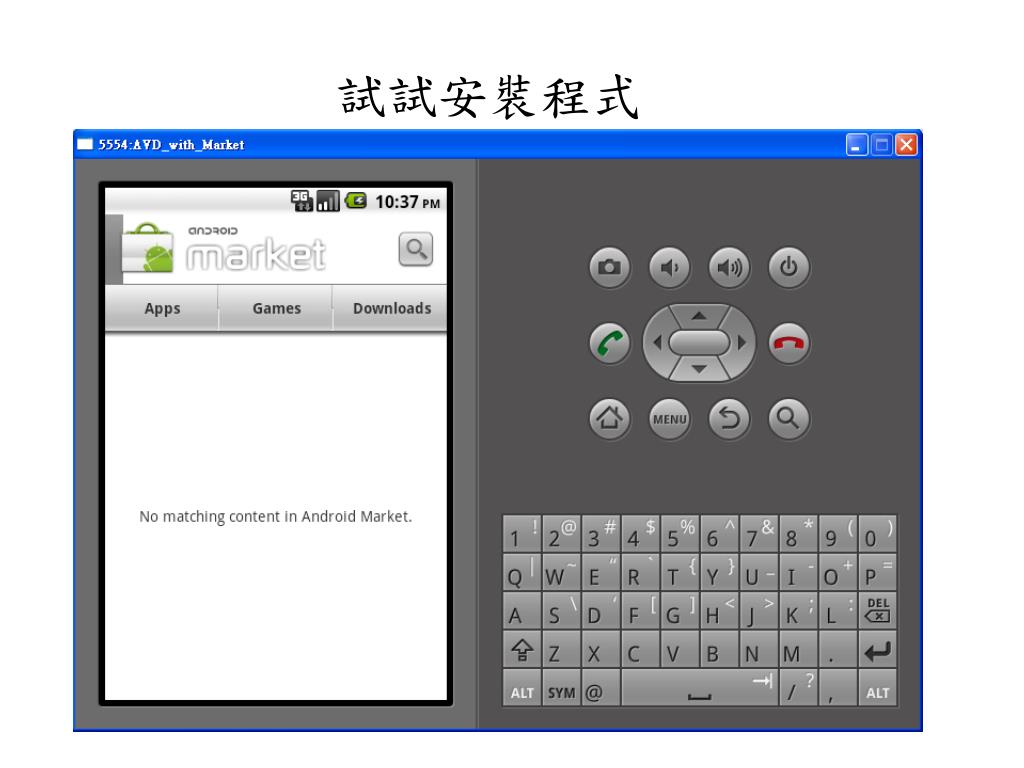 步驟9:完成 • 進入程式區就可以看到Market 一般AVD沒有這個選項