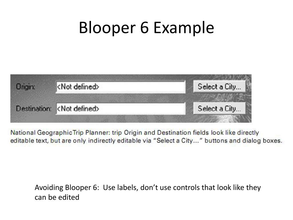 Blooper 6 Example Avoiding Blooper 6: Use labels, don’t use controls that look like they can be edited
