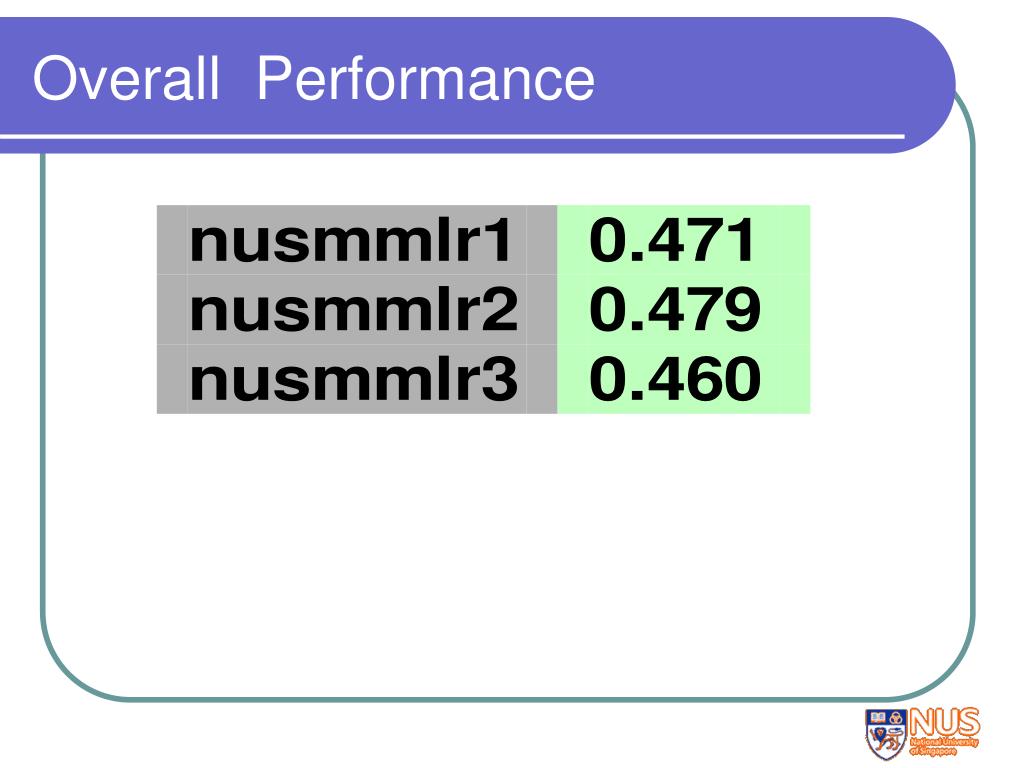 Definition Subsystem • Answer Generation (Progressive Maximal Margin Relevance) • All sentences are ordered in descending order by weights. • Add the first sentence to the summary. • Examine the following sentences. If Weight(stc)- Weight(next_stc) >avg_sim(stc), Add next_stc to summary; • Go to Step 3) till the length limit of the target summary is satisfied.