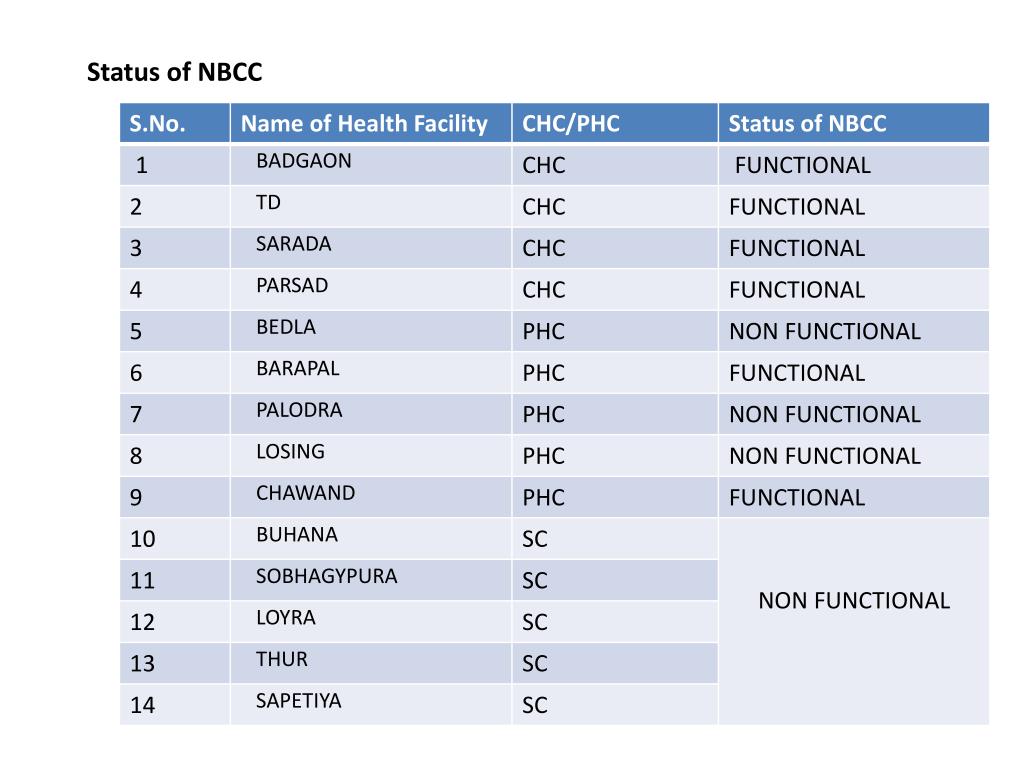 BRANDING • Branding completed at all CHCs but not started at all sub centers and PHC Palodra, Bedla & Losing out of the visited institutes.